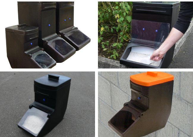 - Salt Boxes: Available in 21 L, 63 L, and 90 L capacities – ideal for locations from small entrances to large site perimeters.